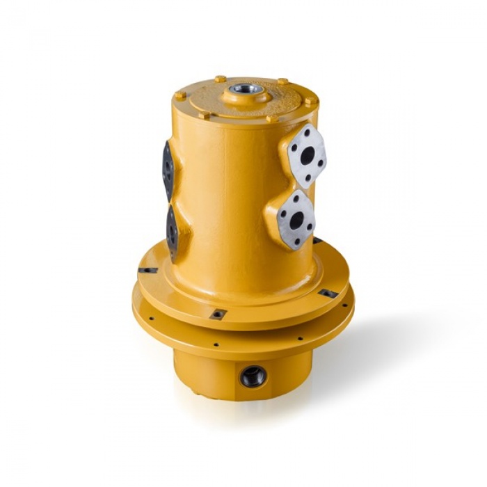 產(chǎn)品簡介:液壓中央回轉(zhuǎn)接頭是挖掘機(jī)、起重機(jī)、高空作業(yè)車、盾構(gòu)機(jī)、旋挖機(jī)、平地機(jī)、海上作業(yè)平臺等液壓系統(tǒng)中的關(guān)鍵零部件,其作用是連接整個(gè)液壓系統(tǒng)中固定與旋轉(zhuǎn)部分的液壓管路,使系統(tǒng)液壓管路上下兩部分具有相對回轉(zhuǎn)運(yùn)動(dòng)360度而不發(fā)生干擾。